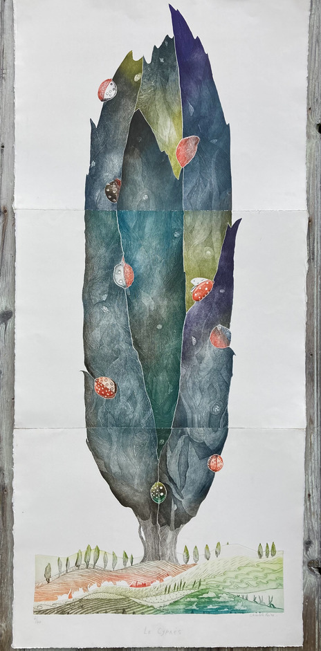 Tryptique les grands arbres : tirés à 40 exemplaires en 3 feuilles à encadrer séparément ou à réunir sous un seul cadre. Gravés à l’eau forte et aquatinte sur cuivre en plusieurs plaques assemblées entre elles.